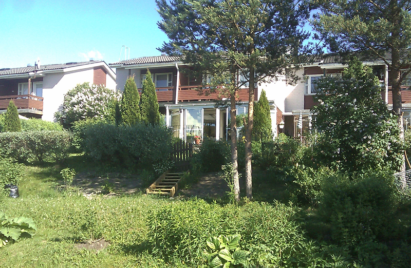 Pihoja reunustavat pensasaidat kuuluvat yhtiön julkisivuun. Osakkaan tulee pitää myös oma takapihakin siistinä, pensasaita leikattava/siistittävä vuosittain, ja pihassa tulee olla siisti nurmikko ja/tai laatoitukset. Yhtenäisyyden vuoksi on suositeltavaa, että kaikki leikkaisivat oman osuutensa pensaista säännöllisesti. Takapihoilla saa toteuttaa itseään, kunhan ei aiheuta naapurille haittaa tai riko rakennuslupamääräyksiä.