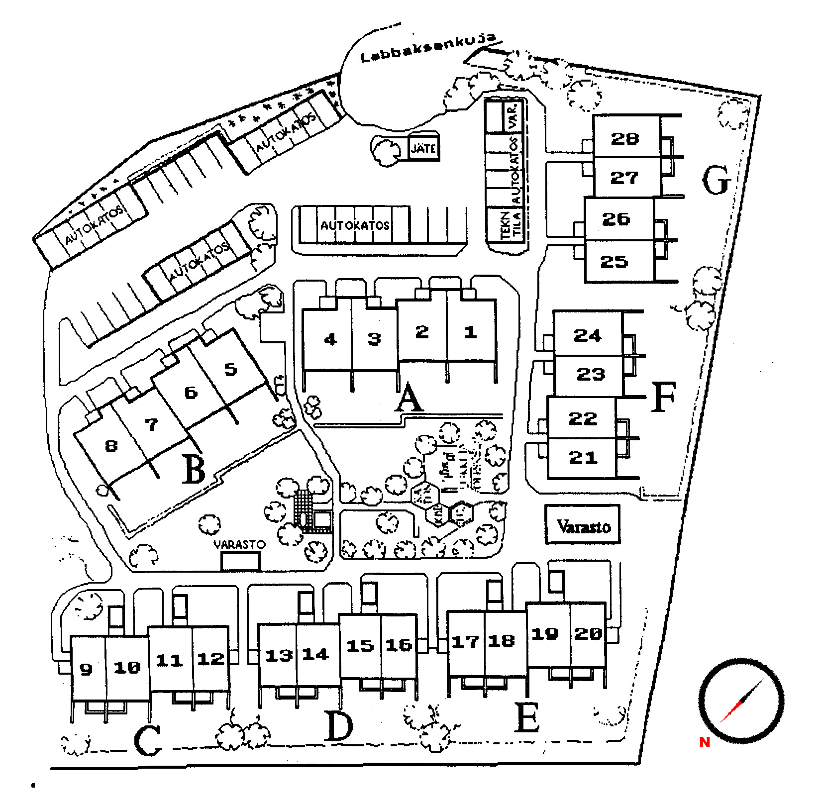 Asuntoja on yhteensä 28 kappaletta, ja ne sijaitsevat seitsemässä rakennuksessa lapsiystävällisen ison pihan ympärillä.